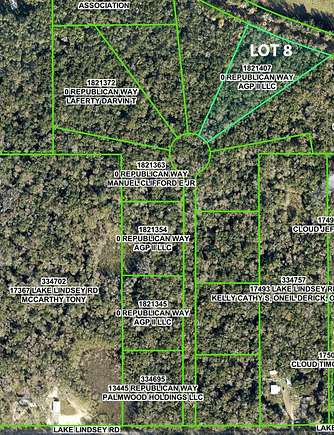 North on US 98, go left on 476 (Lake Lindsey Rd). Right on Republican Way which is just before Citrus Way. Lot is on the cul de sac.