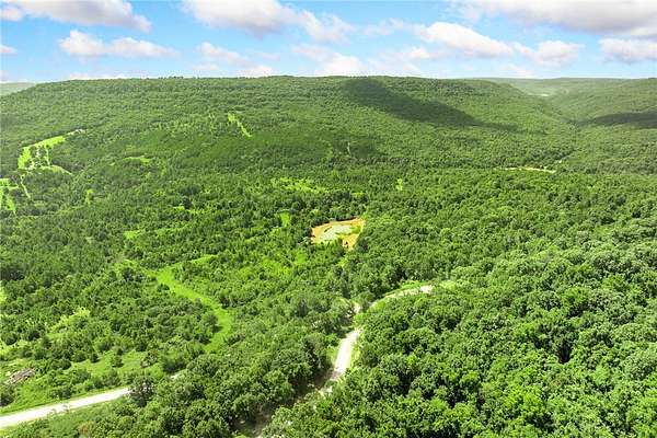 From the intersection of Goblin Drive and State Hwy 392 in Harrison, AR; drive West 4.2 miles on 392 to left on Terrapin Creek Road. Drive Terrapin Creek Road for 2.0 miles to Iron Bluffs entrance (Arch Sign). Turn Left onto Peaceful Place and go across the bridge for 1.3 miles to top of the mountain. Stop and play the QR code video signage along the private road and at the beginning of the lots. GPS Coordinates: 36.22785, -93.23844