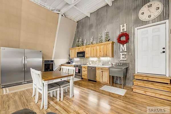 Est $2,747/moTucked away on a quiet country road, this versatile shop house sits on 6.15 acres with valuable water shares and breathtaking views of the nearby crystal ponds, best enjoyed from the Trex deck. Inside, you'll find an open-concept kitchen and living area with vaulted ceilings, two bedrooms with potential for a third, one bathroom, and a large garage offering plenty of space for toys, tools, or projects. Live comfortably in the shop house now while you plan and build your dream home on the remaining acreage-an ideal setup for those craving space, privacy, and a true country lifestyle with room to grow.