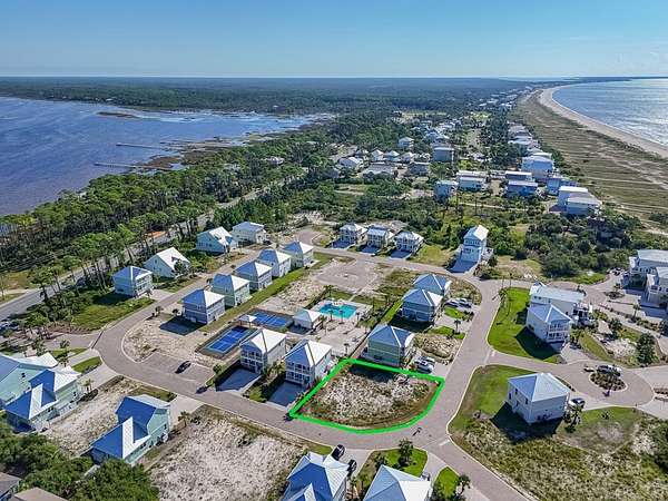 Exceptional Corner Lot with Panoramic Bay Views in Prestigious Villa Del Sol Presenting a rare opportunity to own a prime corner lot in the exclusive gated community of Villa Del Sol. Perfectly cleared and ready for your coastal dream home, this premier homesite offers sweeping views of the serene waters of St. Joseph's Bay and is just a short stroll to the sugar-white sands of the Gulf. Villa Del Sol is a masterfully planned beachfront enclave that blends natural beauty with refined coastal living. Residents enjoy an unmatched array of amenities, including a large community swimming pool, appointed pool house, pickleball and volleyball courts, lush tropical landscaping, and a secure gated entrance. A wide, private boardwalk leads directly to dedicated beach access, while underground utilities ensure a clean, unobstructed aesthetic throughout the community. Whether you're seeking a tranquil retreat or an investment in one of Florida's most picturesque coastal destinations, this exceptional lot offers the perfect canvas for luxury living by the sea.