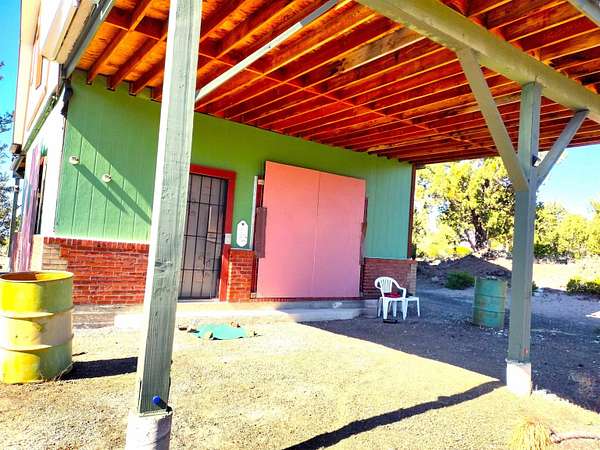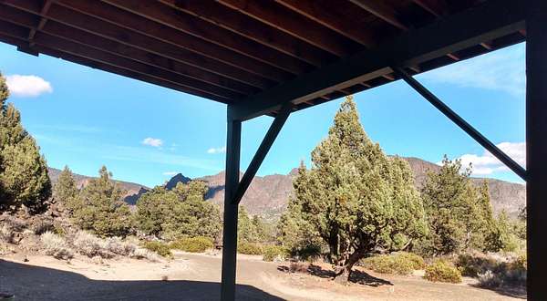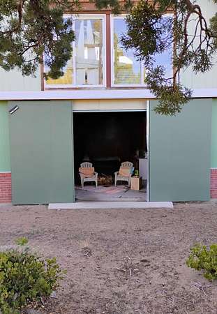 This unfinished multi-use two-story structure boasting stunning panoramic views of Mt. Shasta could be used for storage, farming, garage, recreation, workshop, hunting, or your barn-dominium. Rolling hills paint a tranquil horizon with views of Sheep Rock and a high desert panorama. Substantially built to withstand fierce storms, the total square footage is 1388 including 2 carports with decks above. The lower-level offers an expansive open floor plan that can effortlessly transform for your usage. Exterior surface-mounted sliding doors open to a 12-foot wide, 9-foot high drive-through opening revealing an enjoyable garden-like view. The ground floor is a poured monolithic concrete slab that cools the building in summer. Two drive-thru carports are 10-feet high and 14+ feet wide to accommodate an RV. Carports are recently roofed with 90#/15-year roofing. The first level is fire-resistant, sided with concrete board, brick, metal roofing and gutters, and paved with road base surrounding 10-40' of the building.