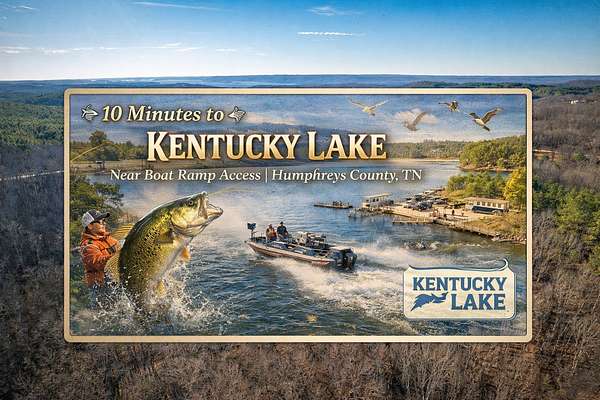 Electric and fiber internet are available at the road, bringing modern amenities to rural living. Situated just 10 minutes from Kentucky Lake boat ramps and the charming town of Waverly, you're less than 90 minutes from Nashville and perfectly positioned for boating, fishing, and outdoor recreation. The property's natural setting attracts abundant wildlife including deer and turkey, making it ideal for nature enthusiasts and sportsmen alike.