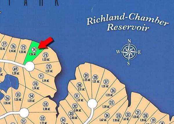 Welcome to your future lakeside escape on beautiful Richland Chambers Lake. This 1.26-acre waterfront lot offers beautiful open water views and an ideal setting to build your dream home. With 248 feet of shoreline, you'll enjoy spectacular sunsets and endless possibilities, including space for your boathouse. Located in Richland Park, a private gated community, you'll have access to premier amenities like a lakeside pavilion with grill, boat ramp and slips, a scenic park with playground, fishing pier, and more. Lot 74 is conveniently within walking distance to the boat ramp and pavilion area, making lake life even easier. Richland Park is also short-term rental friendly and requires site built homes with a minimum of 1,600 square feet.
