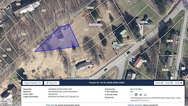 Est $171/moBuilding Lot - Established Neighborhood in Grafton, Taylor County Bring your dream home to life on this beautiful 0.41-acre building lot located in an established neighborhood in Grafton. Situated among well-kept homes, this parcel offers the perfect blend of privacy and community. Enjoy easy access to schools, shopping, and Route 50. Whether you're ready to build now or planning for the future, this lot provides an affordable opportunity in a desirable location.