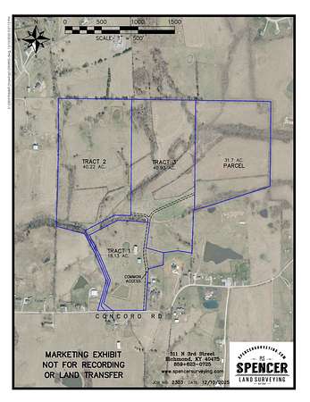 Discover the perfect blend of beauty, privacy, and possibility on this exceptional farmland nestled among the rolling hills of Central Kentucky. This unique property offers the rare benefit of country living less than 10 minutes from Lake Reba Park, Gibson Bay Golf Course, Kroger, shopping, and restaurants. Spanning 31.68 acres this picturesque property offers sweeping, open views in every direction-an ideal canvas for your custom dream home, weekend retreat, or future homestead. Gently rolling fields, lush grasses, and mature tree lines create a serene landscape that feels worlds away yet remains conveniently close to town amenities. Whether you envision a custom-built residence atop a scenic rise, hobby farming, livestock, or simply enjoying the tranquility of wide-open space, this land provides the freedom to bring your vision to life. With its natural beauty, generous acreage, and inspiring vistas, this is more than a property-it's a rare opportunity to build the lifestyle you've always imagined in the heart of Kentucky's countryside. This land can also be purchased along with 420 Concord Rd Tract 2 (40.22 acres MLS#25507881) and 420 Concord Rd Tract 3 (40.93 acres MLS#25507882) if you'd like to have even more land.
