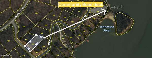 I-40 West, exit 350 and turn left. Turn right on Roane State Hwy, go a few miles and turn Left onto Caney Creek Rd. Continue across the bridge and go about 2 miles to the dead end at New Hope Rd. Turn left onto New Hope Road and continue about a mile into the subdivision. Turn left onto Ridge Top Dr, go through the gate and the lot will be on your left hand side.