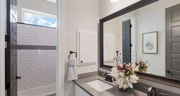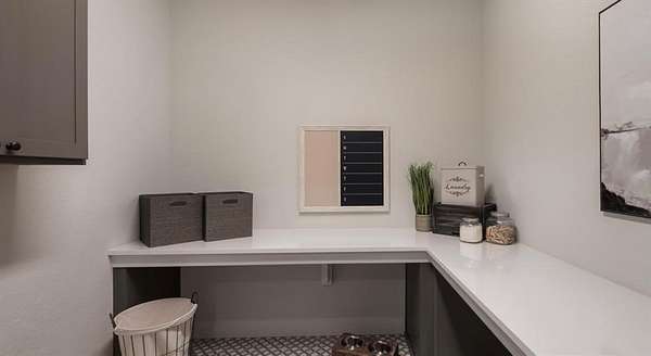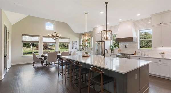 - Breakfast Bar, Ceiling Fan(s), Ceiling-High, Double Vanity, Kitchen Island, Open Floorplan, Primary Bedroom On Main, Quartz Counters, Walk-In Closet(s)