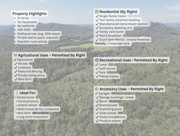 21 ACRES IN NC FOOTHILLS - NO HOA - 4BR PERC - R3 ZONING21-acre tract located on Ridley Ranch Rd in Hiddenite, Alexander County, NC, positioned in the Western North Carolina Foothills. This property features approximately 175 feet of elevation change (1,132'-1,310') and classic foothills terrain offering privacy, seasonal view potential, and multiple possible homesite locations. Current soil report on file approved for a 4-bedroom home. No flood zone and no wetlands. No HOA. Zoned R3 (Residential District Three), permitting by right: single-family detached homes, two-family attached dwellings, manufactured homes (meeting county standards), accessory dwelling units (per regulations), family care homes, home occupations, agriculture, and forestry uses. Agriculture permitted by right. Horses and livestock allowed. Riding stables permitted. Short-term rental use not prohibited in this district Well and septic installation required. Road frontage on Ridley Ranch Rd. Rural setting with convenient access to nearby towns and outdoor recreation. Hiddenite is known for its foothills setting, outdoor recreation opportunities, and small-town environment while remaining within reasonable driving distance to Hickory, Statesville, and Charlotte. Mountain dirt road access, 4WD recommended. Please contact Agent Kayla Carder for more information!NEARBY CITIES: Hickory, NC - approx. 25 miles (35 min)Statesville, NC - approx. 28 miles (40 min) Charlotte, NC - approx. 63 miles (1 hr 15 min) Boone, NC - approx. 45 miles (1 hr) NEARBY AIRPORTS: Charlotte Douglas International Airport (CLT) - approx. 65 miles Piedmont Triad International (GSO) - approx. 75 miles Asheville Regional Airport (AVL) - approx. 110 miles Concord-Padgett Regional Airport (USA) - approx. 60 miles NEARBY ATTRACTIONS: Lake Hickory - approx. 20 miles Stone Mountain State Park - approx. 35 miles Blowing Rock / Blue Ridge Parkway - approx. 50 miles South Mountains State Park - approx. 45 miles