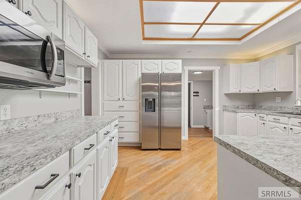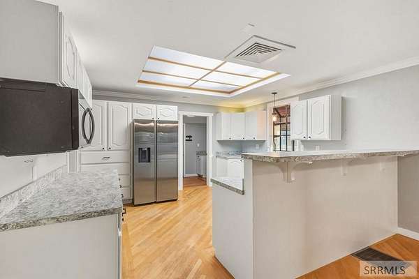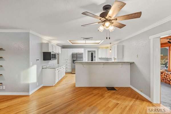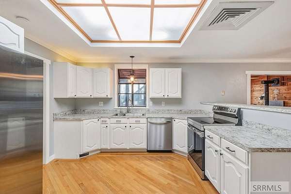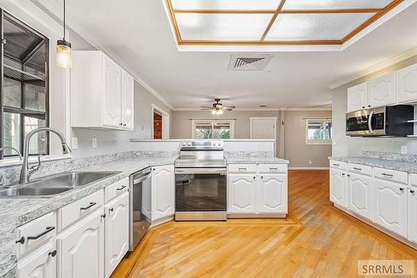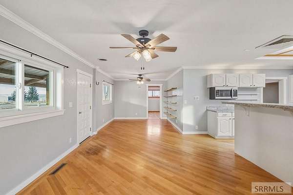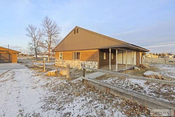 This Rigby property sits on 2.8 acres and offers mountain views. Inside the main home, the upper family room is anchored by exposed beams and a large picture window. The kitchen has been updated with newer appliances, including a brand new third rack dishwasher and reverse osmosis at the sink. Off the main living area, a nearly 300 sq. ft. sunroom adds another place to gather, centered around a Kitchen Queen wood stove. The master bath includes a dual shower, jetted tub, and heated floors. Efficiency windows with a transferable longterm warranty have already been installed throughout the main portion of the house, and the private well was recently updated with a new well house, variable speed pump, and upgraded filtration for the home and sprinkler system. Outside, the land is set up well for a hobby farm. Several good sized shops and mature plantings include lilacs, apple trees, rhubarb, and seasonal flowers. The front yard is fenced, the sprinkler system has been updated, and raised garden beds are ready for planting. A guest house sits on the property and offers potential for an Airbnb/MIL suite. It has its own address and separate electrical meter (everything is included under the main parcel). There's no HOA and CC&Rs allowing you to live independently. Too good to pass up!