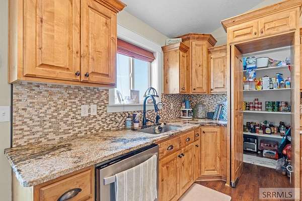 BEAUTIFUL HOME ON 5 ACRES WITH WATER RIGHTS, EXQUISITE SOLAR SYSTEM, WOOD STOVE, AND REVERSE OSMOSIS. The home features an Open Concept floor plan with large living room/dining room/kitchen area. Kitchen has beautiful alder cabinets, large walk-in hidden pantry, center island, and all stainless-steel appliances. The master bedroom has coffered ceilings and an exterior door leading to the large patio. The master bathroom has corner tub and separate shower, double sinks separated with cabinet tower, and toilet closet. There is also a large walk-in closet. The main level has 2 more bedrooms and a full bathroom. The basement features a freestanding wood stove. The large family room has space for a game area and a small office is hidden just off of the family room. There are 3 more bedrooms, a full bath, and plenty of storage areas. Bring your livestock and animals! This large 5-acre lot has two chicken coops, grain bin, small barn, and outbuildings. There is also a walk-in refrigerator to hang game to be cut or for extra refrigeration space. The pasture behind the fully fenced back yard is perfect for all your animals. There is a large patio with a firepit perfect for enjoying family get togethers, BBQ's, or just relaxing. Call Listing Agent to schedule a showing today!