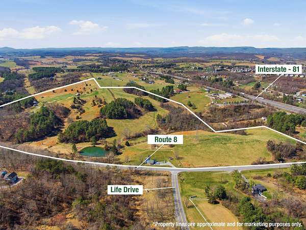 Prime residential development opportunity located at Exit 114 off I-81 in Christiansburg, Montgomery County. This strategically positioned property offers immediate interstate access with traffic counts exceeding 60,000 vehicles per day and strong visibility. Ideally situated between Blacksburg, Radford, and Christiansburg, the site is supported by major employment and education drivers including Virginia Tech, Radford University, the Corporate Research Center, and Radford Army Ammunition Plant. The region continues to experience steady population growth and housing demand with limited available development land. Excellent location for single-family, townhome, or build-to-rent communities. Public utilities available. Rare opportunity to invest in one of the New River Valley’s most active growth corridors. The proposed concept plan would allow 168+ single family and townhouse style homes and still have an abundance of open space available.