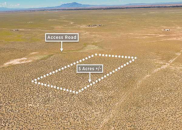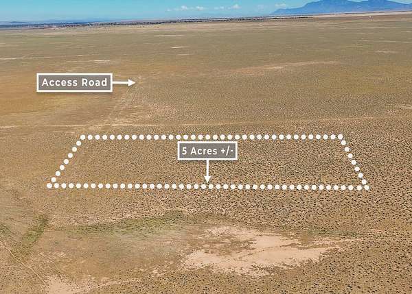 Access to the lot is provided by a dirt road that connects to surrounding routes in Valencia County.