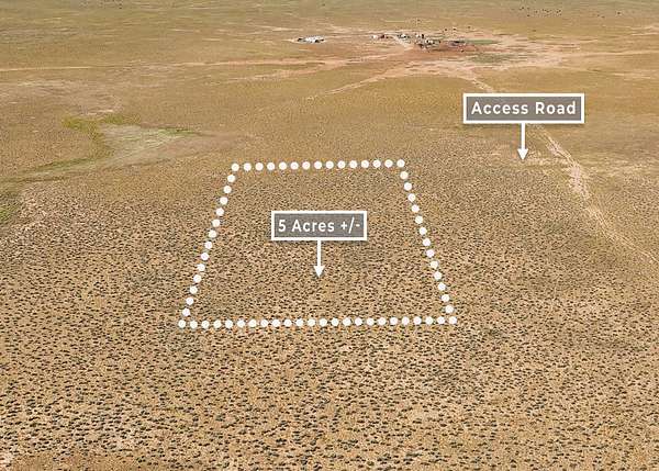 The land is located in a rural area with native grassland, scattered juniper, and desert shrubs.