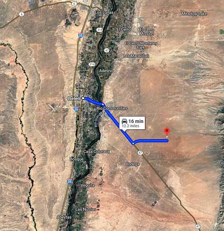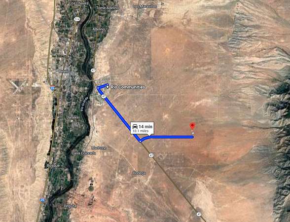 Access is straightforward. You reach the property via S. Navajo Loop, followed by a dirt road that leads directly to the lot. The setting feels private and peaceful, but you're not isolated. Rio Communities is 15 minutes away, Belen 20 minutes, and Albuquerque is under an hour all offering groceries, healthcare, education, dining and services. The property is located just west of the Manzano Mountains with plenty of walking, hiking and other recreation options close by.