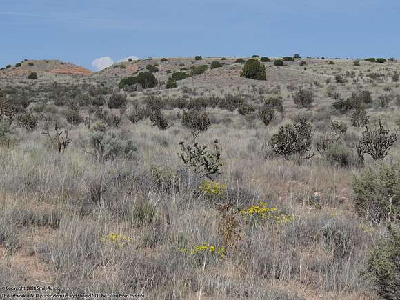 The property sits atop a rolling hill which slopes down off the road from the west and flattens out to the east. It's a beautiful lot with scattered junipers, native brush, a bit of grass and a few different cactus including chollas.