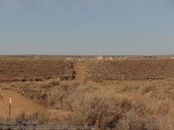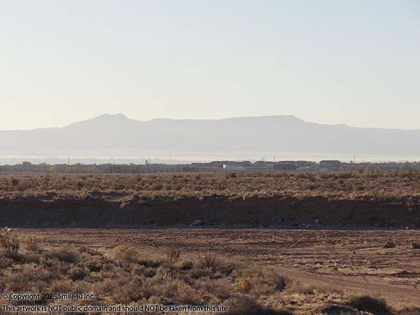 The lot is fairly flat and a pretty desert landscape with native plants. 3rd St SW is a bladed dirt road that runs along the west. I took Isabel Road SW and picked my way thru the roads that were hard packed. This is a very sandy area so be careful! It's difficult to cross the sandy wash to the north. You can see the property sitting just to the south of the wash for those that don't want to try and attempt to drive it - I've been stuck in the sand in Rio Rancho once and used my floor mats and a lot of luck to get out!