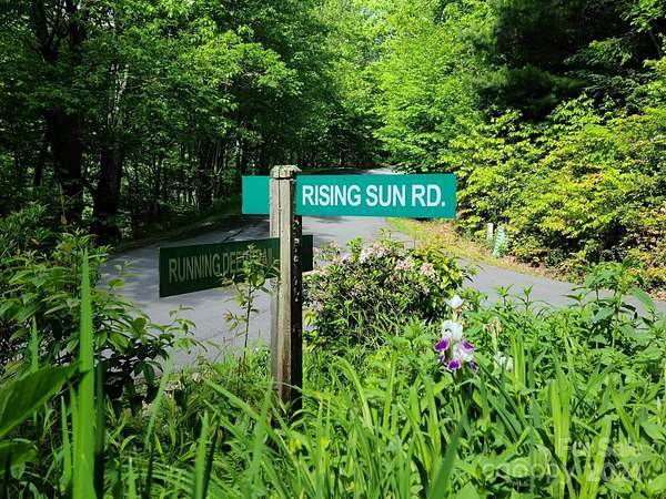 From Exit 100 Hwy 23/74 Eastbound, take Plott Creek Rd to the Villages of Plott Creek on the Left, turn Left and proceed to Serenity Mountain Rd on the Right, turn Right and proceed to Running Deer on the right, turn right and proceed to Rising Sun Lane on the Right, turn Right and proceed to the end of the pavement, property is in the Left.