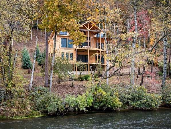 Carefully designed to bring you a luxurious river living experience, this newly constructed retreat is beyond captivating. You'll be greeted by the sounds and scenes of the glistening Toccoa River and quickly notice that this rustic yet elegant retreat was built with just that in mind. Both indoors and out you'll appreciate the balance of mixed materials that create a warm and relaxing environment. Outdoors you'll find two levels of covered decking that overlook the water complete with a stone fireplace on each level, along with access to the water's edge, and landscaping that has been thoughtfully planned to elevate first impressions. Indoors the modern finishes and rustic elements work together to bring you a cozy and stylish living space. The main level offers an open great room with soaring ceilings and a stone fireplace and leads right to the main level covered deck, the kitchen and dining area are just off the great room with fantastic prep and storage space, the primary suite which also features the washer and dryer, and additional ensuite. On the terrace level you'll find a secondary living room complete with wet bar and fireplace, as well as two additional bedrooms and bathrooms + flex/office space and access to the lower-level porch and to the water. This modern rustic showstopper is the ultimate space to entertain and sleep guests, yet when they're all gone it still offers an intimate feel. Other highlights include granite countertops, stainless appliances, tile showers, custom cabinetry, and more. You'll enjoy the best of both worlds - submerging yourself in the great outdoors and what the mountain and river life have to offer while also enjoying easy and quick access to amenities galore - it's just minutes to downtown Blue Ridge and McCaysville, Old Toccoa Farm Golf Club, Lake Blue Ridge, and more. This dreamy haven is one you don't want to let pass you by. It's all in the details at River Chase Way...