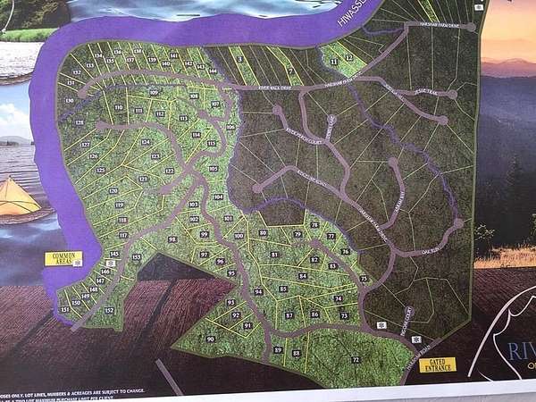 Awesome Long Range Mountain views and lays good with 3 nice building knolls to divide. Or keep for yourself if you want 2 privacy lots on each side of you. Lot 94 can be devised into as many lots as you can and get septic permits per 3 max in deed.Come see if you want for yourself or want to build few homes to resell. Invetors would enjoy but so would a person who would like tons of privacy. Restricted gated community with building restrictions. River front pavilion/riverfront fishing at the pavilion/picnic tables & bathrooms all good for use when you own. The roads area alll paved and comm. wells in development. Thinking there might even be city water/check on that before you offer to determine how far away it is to develop/build. I would keep it for myself and build with 1 lot each side of me to have extreme privacy. One of the largest lots in the development here.
