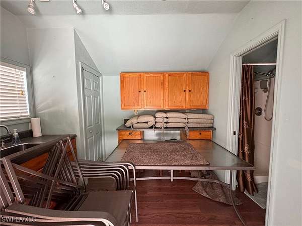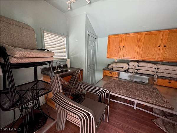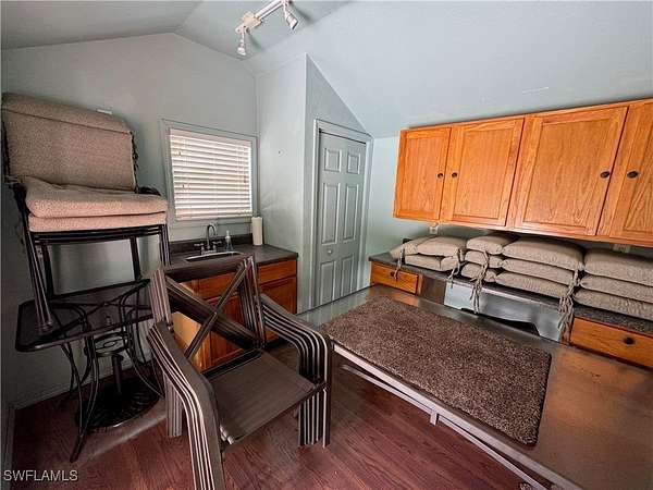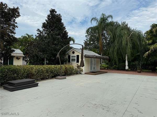 Lot 282 This back in lot is situated with loads of common area space on two sides. The back lanai leads you out thru a passage over pavers to a expansive common area that feels like your own private grassy park. With the common space to the side of the property you'll get plenty of buffer between you and your neighbor. This would be a perfect lot for a large coach house or just as it is works too. The current coach house has a nice large platform step into the entry. French doors. The interior is very neat and the cabinets and counter top on the west wall are able to be moved for greater storage area inside in the off season. Great curb appeal with the pavers that frame the lot on three sides. The landscape has a great tropical feel and adds a lot of privacy. 4 Black wrought iron chairs and matching table will convey with the purchase and two outdoor umbrellas. No appliances will convey with property. Riverbend is a Golf cart & pet friendly community on the Caloosahatchee River with a private boat ramp, Large pool, bocce, shuffleboard, putting green, hot tubs, Clubhouse, and exercise room. 8 Pickleball courts open year round. R/C racetrack, billiards, R/C boating club and more. *Property is in rental program, all rentals must be honored by purchaser.