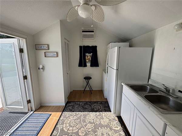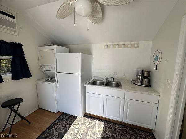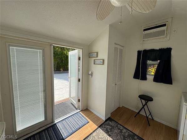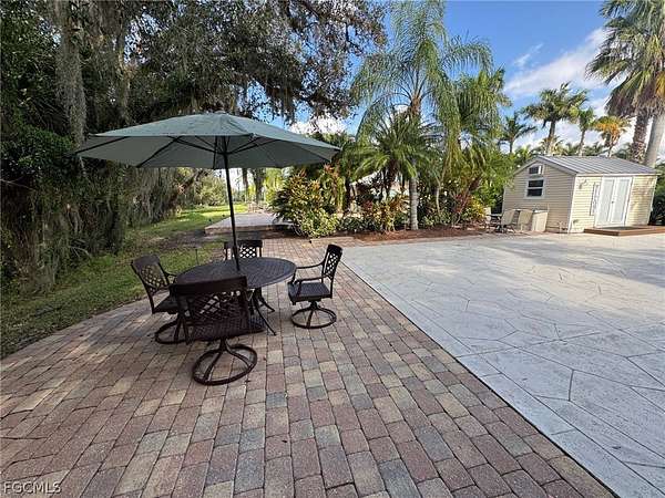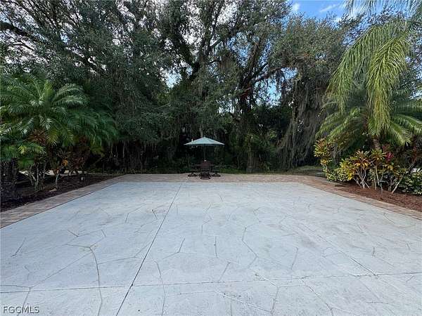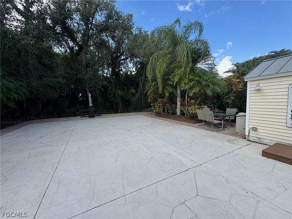 Tucked into a quiet, tree-lined corner of RiverBend Motorcoach Resort, Lot 300 feels like a hidden retreat waiting to be discovered. You turn in, ease onto the pull-in pad (no complicated maneuvering here), and immediately notice how still it is. Not just "resort quiet." Real quiet. The kind where you hear the breeze moving through the trees, birds chirping in air. Because instead of another coach, the backdrop is a wooded preserve. No neighbors to look at or behind you. No need to draw the shades. Just nature doing what nature does. Across the street? A wide stretch of green common area that makes everything feel even more open. It's the kind of setting where mornings linger a little longer and coffee tastes a little better. Afternoons are especially sweet here. Generous shade keeps things comfortable, and being near the river and River Clubhouse means you're close enough for social gatherings, yet perfectly positioned for peaceful retreat. The lot itself is stamped concrete with paver accents that elevate the patio and side areas. Then there's the coach house, charming, practical, and welcoming. French doors with built-in blinds open into a cozy interior complete with a kitchenette, washer and dryer, refrigerator, closet, shower, and toilet. Everything needed for comfort and convenience. Even better? A table and chairs convey with the property, along with all appliances. It's set up and ready to enjoy from day one. Picture this, the perfect blank canvas to build exactly to your taste, expand the pavers, design a larger coach house, add an extended screened-in room for breezy evenings, the hard part is dreaming it up. The choice to make it yours is easy. Life at RiverBend unfolds at just the right pace. Morning golf cart rides along the Caloosahatchee River. Pickleball games with friends. Sunsets by the clubhouse. Soaking in the hot tub at the pool cabana. And in season, a vibrant calendar filled with clubs, games, laughter, and community under the grand oak trees. Lot 300 isn't flashy. It doesn't need to be. It's peaceful. It's private. It's quietly special. And sometimes, that's exactly what makes a place unforgettable.