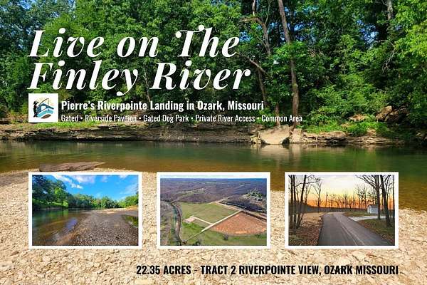 Discover the beauty of nature and the freedom to build your dream home on Tract 2 at Pierre's Riverpointe Landing, offering 22.35 acres within a thoughtfully designed community that blends modern comforts with a peaceful natural setting. Approximately 4.5 acres of common area are located within the adjacent tract, preserving open space and enhancing the natural character of the surrounding property. This secluded community, with a private gated entrance (coming soon), is designed for those who want to step away from the pace of everyday life and reconnect with nature while still enjoying modern conveniences. Residents enjoy easy access to the Finley River, with approximately 2,000 feet of river frontage, and ownership extending to the middle of the river, creating exceptional opportunities for fishing, kayaking, swimming, and relaxing by the water. Community amenities are designed to enhance outdoor living and include a riverfront covered pavilion with kitchen and seating, community fire pits, scenic walking paths, and a fenced dog park. Portions of the property include floodway areas (blue with stripes) that are not buildable. However, there are also significant areas within the 1% Annual Chance Flood Hazard zone (blue) where building is currently permitted as long as the foundation is built at least 1 foot above ground level. Additionally, portions of the property are completely outside of the flood zone (orange). An engineer is currently preparing supporting documentation regarding these areas. Located just minutes from the shopping, dining, and conveniences of Nixa, this property offers the rare balance of peaceful country living with easy access to town. Paved road access, rural water, and electric are available, making it easier to bring your vision to life.
