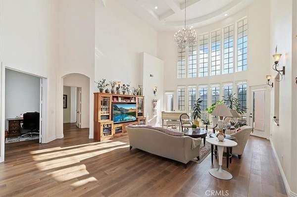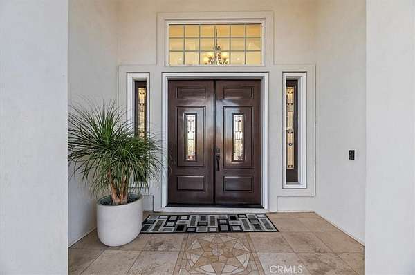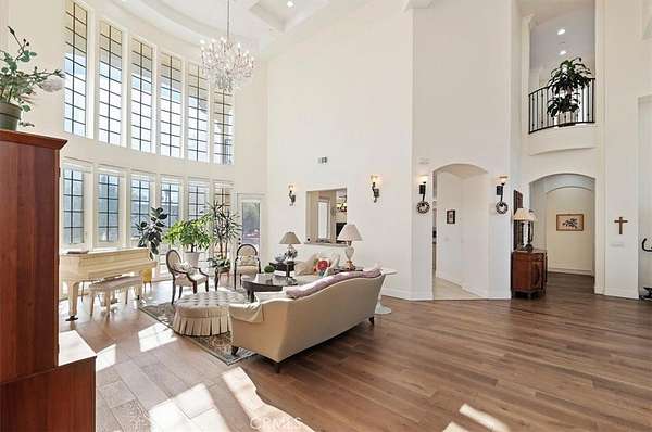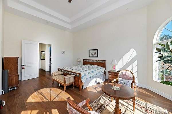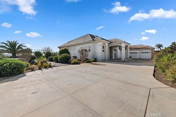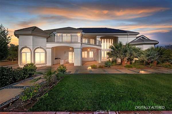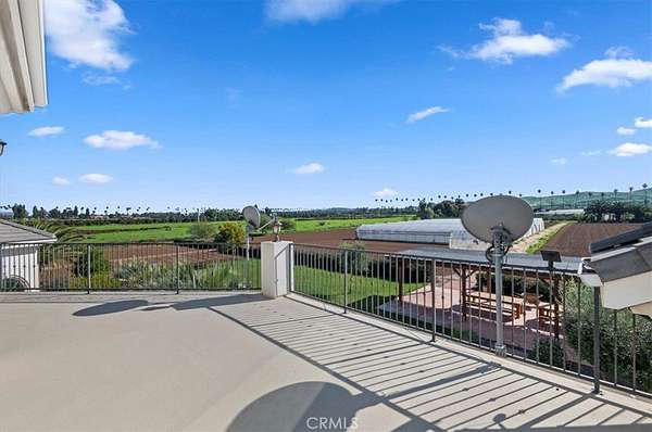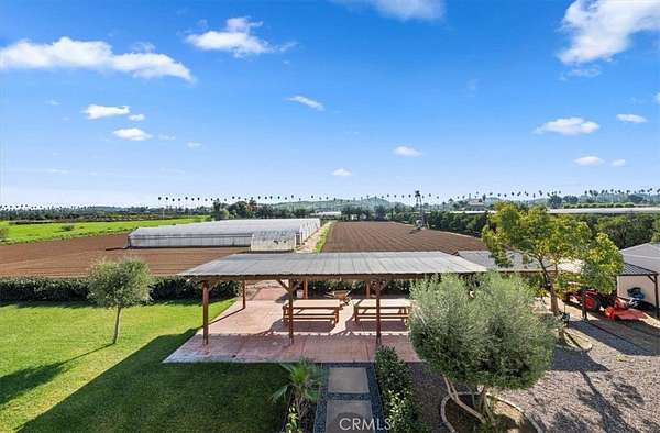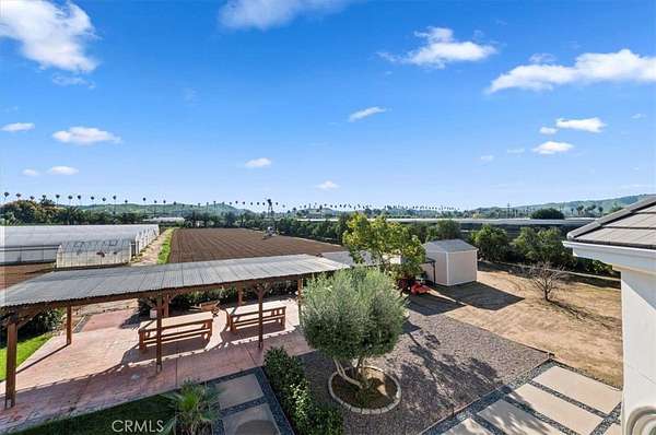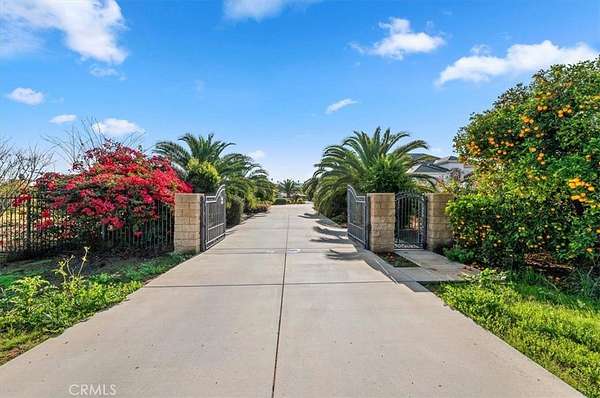 Welcome to an extraordinary gated estate offering privacy, scale, and luxury on approximately 5 acres in a prime Riverside location. Built in 2015 and thoughtfully designed with exceptional craftsmanship, this stunning residence spans approximately 6,500 square feet and delivers a rare blend of elegance, comfort, and resort-style living. A private gated entry and long driveway lead to the impressive facade, framed by manicured grounds and mature landscaping. The property welcomes you with a tranquil koi pond, setting the tone for the peaceful, estate-like atmosphere throughout. Inside, a dramatic two-story foyer and grand living room showcase soaring cathedral ceilings, abundant natural light, and rich hardwood flooring. The formal living and dining spaces are ideal for entertaining, while the expansive family room flows seamlessly into the chef's kitchen--featuring quartz countertops, a large center island, high-end appliances, and generous cabinetry. The thoughtfully designed floor plan offers exceptional flexibility. The first level includes three bedrooms, including the luxurious primary suite, multiple full bathrooms, and an additional office or bonus room that can function as a sixth bedroom. Upstairs, you'll find a massive bonus room and two additional bedrooms--each with its own bathroom and walk-in closet--along with private decks that capture beautiful views of the surrounding property. The primary suite is a true retreat, complete with a spa-inspired bathroom, an expansive walk-in closet, and serene views of the grounds. Throughout the home, you'll find quality finishes, elegant architectural details, and abundant space for both everyday living and hosting on a grand scale. Outdoors, the estate transforms into a private agricultural oasis. The grounds feature multiple large greenhouses, extensive fruit-bearing trees, including mature orange trees, established irrigation with water stock, and ample open space for gardening, farming, recreation, or expansion. Additional highlights include dual solar systems, a spacious three-car garage, and abundant room for vehicles, equipment, or future amenities. This is a rare opportunity to own a truly special property that offers luxury living, privacy, and functional acreage--all within convenient reach of city amenities.