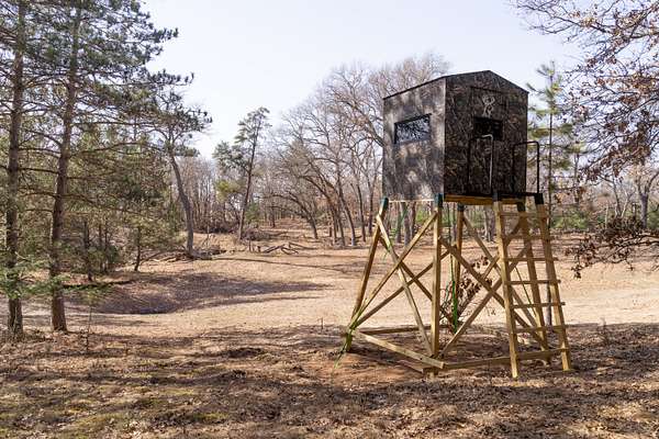 A strategic water hole has been dug in by one of the stand locations to allow for whitetails to get a needed drink during the hot summer months and rutting fall. For hunters, the layout of the property is extremely functional. Multiple access points allow hunters to reach stand locations with minimal pressure on the deer, an important advantage when targeting mature whitetails. The property includes three strategically placed enclosed hunting blinds, providing an important start to your whitetail hunting success. The farm sits in a region of central Wisconsin well known for producing healthy deer populations, and the surrounding landscape of agriculture, timber pockets, and the Fox River corridor creates ideal habitat diversity. The nearby river system provides an important natural travel route for wildlife and adds to the property's overall hunting potential. In addition to the strong hunting opportunity, the property also offers excellent scenic views overlooking the Fox River and includes a small access point to the river itself for fishing, kayaking, or launching that duck skiff. Located just minutes from Princeton, Green