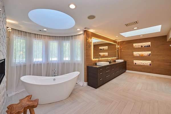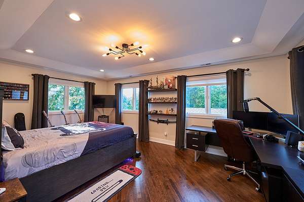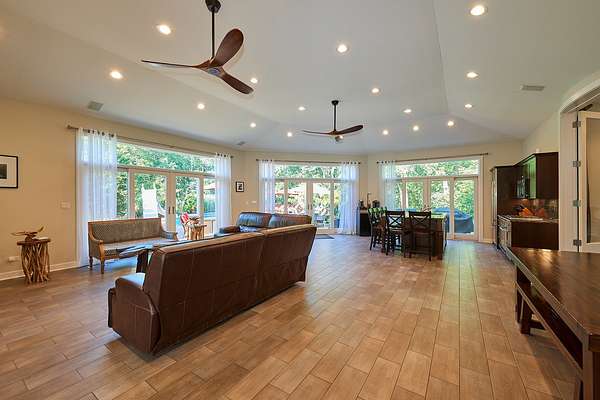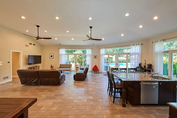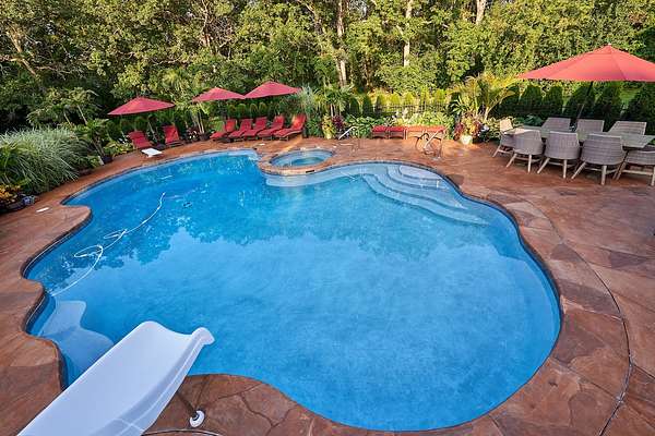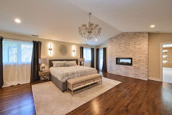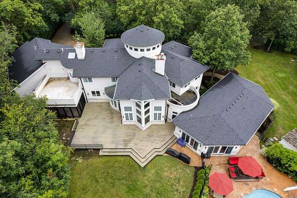 Experience the epitome of luxury living in this newly renovated 8-bedroom, 6.2-bath home, spanning approximately 11,000 finished square feet and perfectly situated on 1.9 acres of secluded land. Every detail has been meticulously upgraded, including brand-new hardwood floors, modernized bathrooms, a state-of-the-art kitchen, and a fully finished basement with a unique casino theme. The property also features an all-new roof and gutters, fresh pool plaster, a new deck, and updated garage doors. This one-of-a-kind residence includes a fully equipped guest suite/pool house with a private entrance, full kitchen, bedroom, bathroom, and living area. The main house is adorned with high-end finishes, a voluminous open layout, and stunning three-story windows that seamlessly blend indoor and outdoor living. The Chef's kitchen is a dream come true, featuring top-of-the-line stainless steel appliances, a spacious island with a breakfast bar, an industrial-sized SubZero refrigerator, a built-in wine rack, and an eating area with exterior access. The master bedroom offers a serene retreat with a cozy fireplace and a spa-like ensuite that includes a steam shower with body sprayers, a whirlpool tub, and a spacious two-sink vanity. The second level is home to three additional bedrooms, two of which share a Jack & Jill bathroom, while the third boasts an ensuite. The finished basement is an entertainer's paradise, offering two additional bedrooms, two full bathrooms, and more. Step outside to your backyard oasis, featuring a large in-ground pool, hot tub, screened porch, and lush landscaping. Ideally located near Downtown Deerfield, I-94, various golf clubs, and an abundance of dining and shopping options. This home is still undergoing the final touches for a complete remodel-luxury, style, and convenience all await you here!