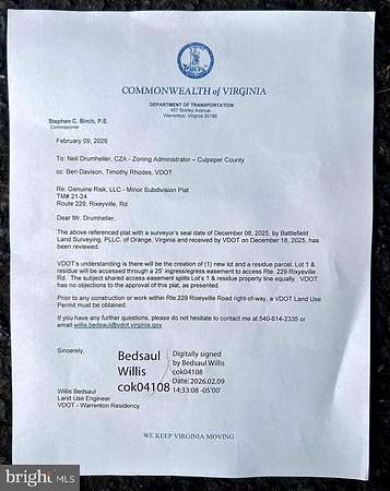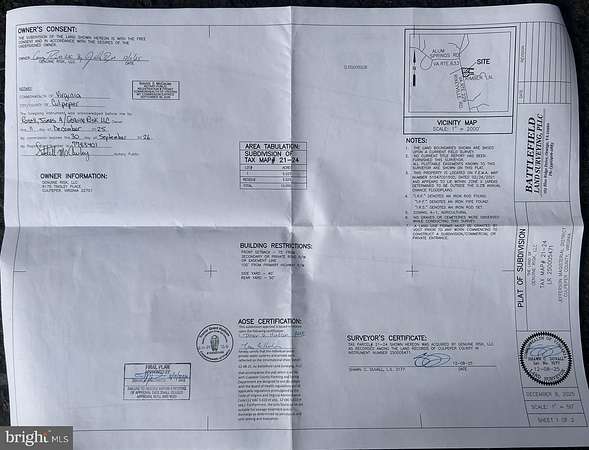 Est $1,548/moBeautiful 5.025-acre parcel located in Culpeper County, situated in front of The Oaks subdivision but not part of the subdivision so no covenants or restrictions. An additional adjacent lot is available, offering expanded acreage or future investment potential. Property is approved for a 4-bedroom gravity flow septic system and is approved & recorded. Enjoy a convenient location with easy access to both Culpeper and Warrenton, combining privacy with accessibility. An excellent opportunity to build your dream home or secure land in a desirable, growing area.