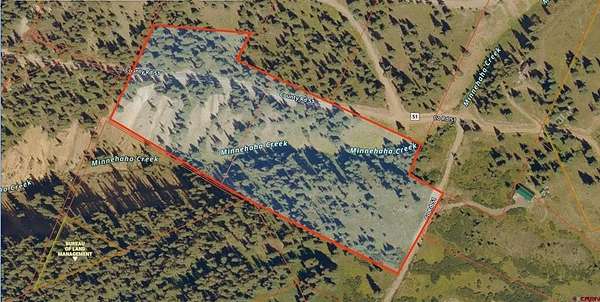 Est $2,166/moJustin D Osborn, The Wells Group of Durango, LLC, O: 970-946-3935, justin@wellsgroupdurango.com, http://southwestcoloradoranchbrokers.com/: Minnehaha Creek runs through this 8 acre mining claim located at 11,400' elevation. This is one of the few mining claims available you can actually drive a vehicle to (no hiking into), and a build a cabin on. Owner financing terms possible with 35% down. Low annual taxes of only $700. Seasonal access only. No winter maintenance. This is backcountry skiing at it's finest with fresh ski tracks in this basin in June. Located at coordinates 37.888, -107.6377. See interactive map in the virtual tour field.