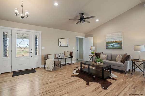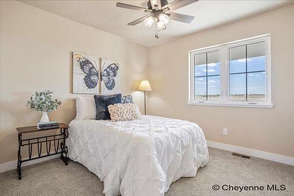 Brand New Home by Leaning Tree Homes, Inc. in Blue Roan Ranches Subdivision. Located north of Cheyenne just off US Interstate 25 and Whitaker Road Exit. Ranch-style "Arya Plan" is an open floor great room concept floor plan featuring 3 bedrooms, 2 baths, and oversized 2-car attached garage. Three of the bedrooms are perfectly situated on the main level. Builder can provide quote for basement to be fully finished as an additional cost upgrade to the home. Central air-conditioning with 95% high-efficiency forced air furnace. Spectacular sunrises and sunsets can be appreciated year-round. This tranquil property on 5.98-acres is minutes from Cheyenne, schools, & shopping. Light, neutral decor throughout! Close-in rural location. For over 30 years, Leaning Tree Homes, Inc. has been building custom homes in the Cheyenne and surrounding areas---including Burns, Carpenter, Hillsdale and beyond. They are well-known in southeast Wyoming as a builder of quality custom homes. Leaning Tree Homes has an excellent reputation for their customer service and attention to detail. Call Listing Agents for information for a list of other new construction homes and locations to consider for your dream home. Easy Directions: From US Interstate 25 & Vandehei Interchange, drive north on I-25 for 15 miles. Take Exit 29 (Whitaker Road Exit). Turn right onto Whitaker Road and then head east into the new Blue Roan Ranches Subdivision.