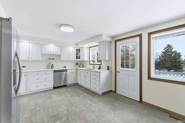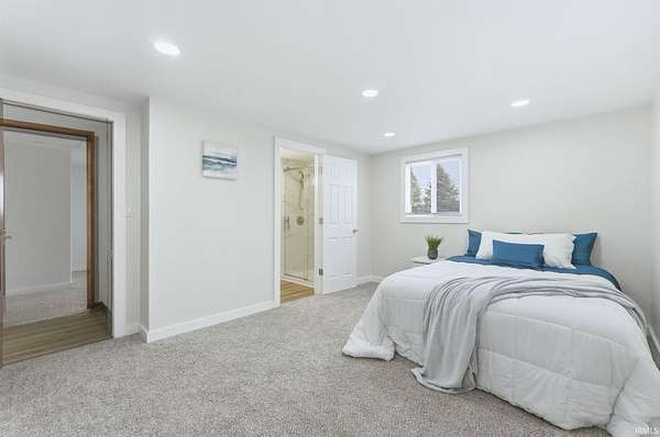 Open House Saturday 12/20 1-3PM and Sunday 12/21 1-3PM Welcome to this completely renovated, one of a kind home offering the privacy and feel of your own personal compound. This massive bi-level property features a stunning indoor inground pool paired with a Master Spa jacuzzi, all located within an expansive indoor pool suite designed for year round enjoyment. The lower level offers an impressive open-concept layout with a wet bar and large sliding glass doors that seamlessly connect the living space to the pool room, creating an exceptional setting for entertaining or relaxing. This home includes four bedrooms and three fully remodeled bathrooms, each finished with elegant tile work and modern design. A separate, generously sized bedroom located just outside the pool area provides excellent flexibility as a bonus bedroom, private guest suite, or home office. The brand-new kitchen features granite countertops, all new stainless steel appliances, and modern finishes, while new flooring and fresh paint run throughout the entire home. Mechanical updates include a brand-new furnace, ensuring efficiency and comfort. Additional highlights include two attached two-car garages with separate entry points, offering ample storage and convenience. Situated on over an acre of fully fenced land, this remarkable property combines luxury, space, and privacy in a truly rare offering.