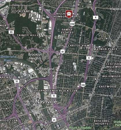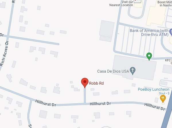 From corner of Dickerson Rd and Ewing Dr, Go south 1 block to Hillhurst dr, right on Hillhurst and go approximately 0.2 miles to Robb Rd is on the right side Between adjacent property 2920 and 2924 Hillhurst dr