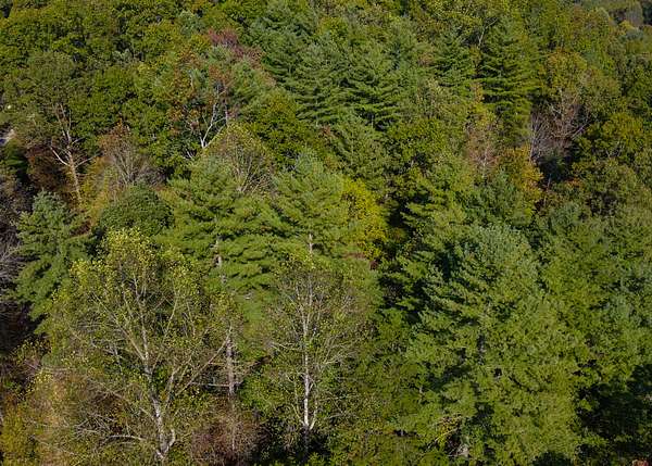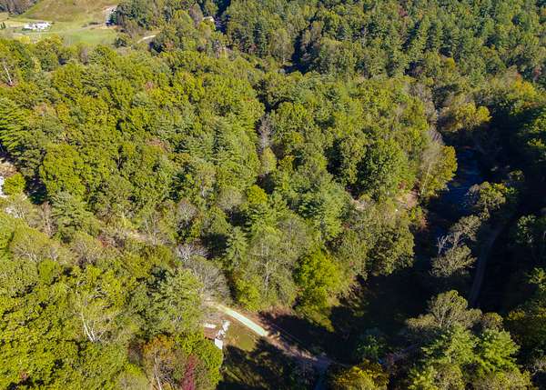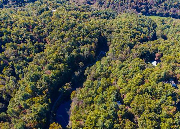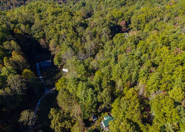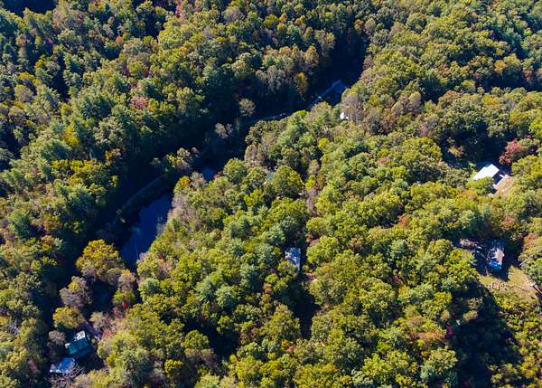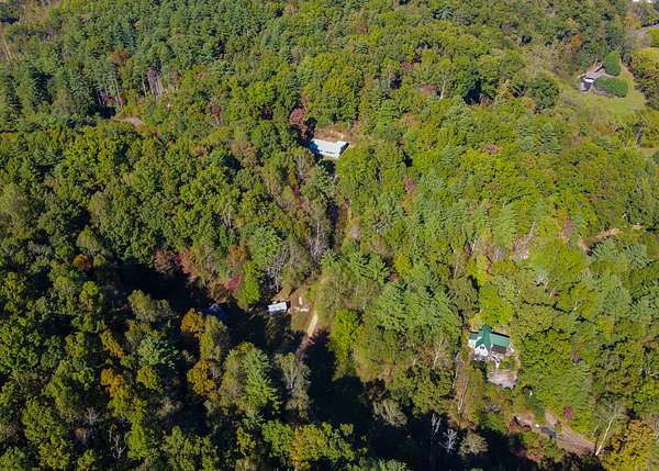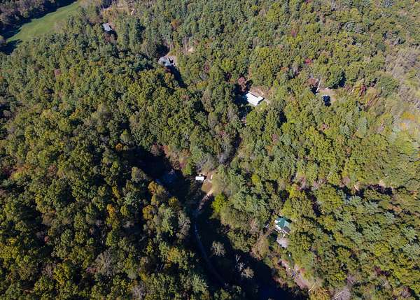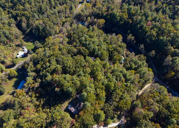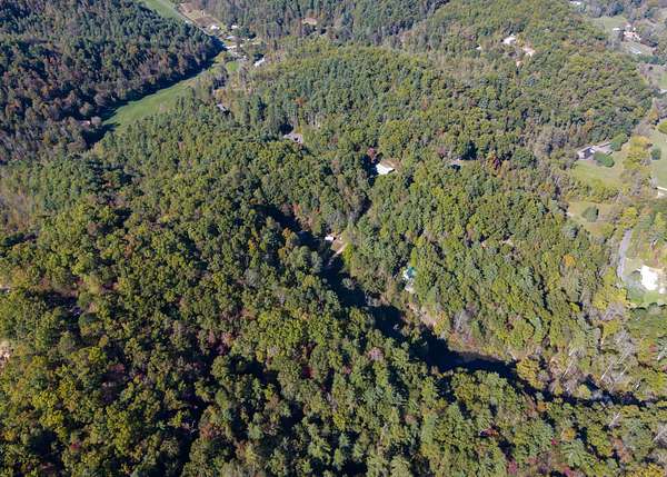 The lot is situated in a wooded mountain environment with dense mixed hardwoods and pine, along with native vegetation such as rhododendron, mountain laurel, and ferns that are typical of this part of the southern Appalachians.