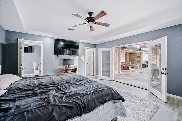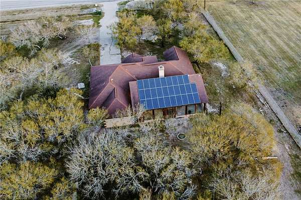Situated on 1.88 acres and beautifully lined with mature mesquite trees, this property offers the privacy you've been searching for with a powerful financial advantage. Equipped with solar panels that are paid in full, providing you with immediate energy savings, this setup offers the Buyer the exciting potential for living completely off the grid. Includes a dedicated mechanical room and a private office space, both uniquely designed to double as security and safety rooms for your protection and peace of mind. An open floor plan with high ceilings and expansive windows allowing in natural light. The kitchen features updated appliances, ample prep space, and a cozy breakfast nook with peaceful backyard views. Primary bedroom is a private haven featuring a large walk-in closet and a dedicated en-suite bath. This home includes an office space and mechanical room Just shy of 2 acres; there is a workshop, a swimming pool, and parking for your boat and RV. The large patio is ready for weekend barbecues under the shade of the native mesquites. Experience the quiet of the countryside while staying perfectly positioned within the Greater Corpus Christi area, just minutes from local schools, dining, and shopping!