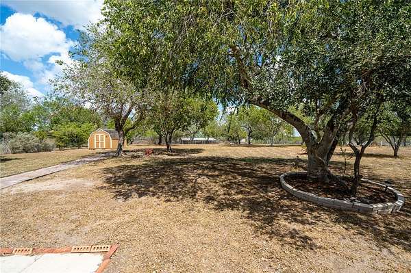 Welcome to your country-estate setting nestled in the desirable Quail Valley area zoned to the much desired Calallen ISD. Situated on a generous 3.10-acres, this well-maintained, one-story home spans 2,867 square feet and delivers a thoughtful, functional floor plan with room for everyday living and entertaining, along with an attic humidifier to help with allergies, respiratory irritations, and dry skin, as well as protecting wooden furniture and floors. The house is set back from the road connected by a cement driveway with mature trees that gives you open space, privacy, and a peaceful shield from traffic noise. The floor plan flows naturally, with a central gathering area ideal for both everyday comfort and hosting guests. A cozy fireplace anchors one side of the living area, perfect for intimate evenings. The kitchen has ample counter space, cabinetry, brand new dishwasher, that opens to the breakfast area, and a connection to the dining area making this kitchen a functional heart of the home. Retreat to your large split primary bedroom with a spacious, naturally lit bathroom with a soaking tub and a separate standing shower, AND a connection to the laundry/utility room! The three secondary bedrooms are on the other side of the home with ample storage space in the hallway. The 3+ acres has a storage shed and a loaf shed that was used for a horse but it is ready for your imagination! Don't miss out on your chance to begin a quiet, country-style living!