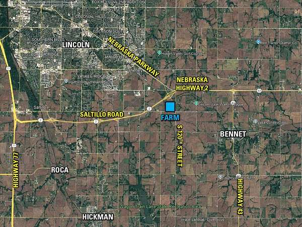 This farm is perfectly situated in an expanding part of Lincoln, Nebraska. With the addition of Standing Bear High School and being located in the Norris School District, this farm offers exciting development potential for residential homes located in a desirable area. This farm also offers commercial development potential with its ease of access to Nebraska Highway 2, as well as having frontage access along two paved roads. There is also easy access to electricity with a small substation in the corner of the farm and transmission lines running along the East Boundary of the farm.