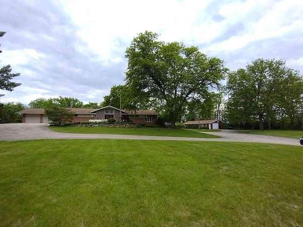 * CUSTOM MID CENTURY DREAM HOME ON ACREAGE* This stunning midcentury all-brick home sits gracefully on approximately 8–9 mostly wooded acres, offering privacy, beauty, and abundant space. A circle driveway leads to a generous parking area, a two-car attached garage, and a large 24' x 60' outbuilding ideal for storage or hobbies. The impressive double-door entry opens to a gorgeous living room featuring cathedral beamed ceilings, slate and hardwood floors, and expansive windows showcasing serene views of the beautifully landscaped lawn, woods, and visiting wildlife. The remodeled kitchen and baths complement the open-concept kitchen/living/dining area, where tall soft-close cabinets, granite counters, a striking tile backsplash, an impressive hood, center island and a skylight create a bright, inviting space. Step through the patio doors to enjoy the professionally landscaped outdoor patio and the peaceful natural surroundings. The master suite offers a private retreat with double closets, double sinks, granite counters, and a full tile shower. A spacious first-floor family room leads to two additional bedrooms and a remodeled bath with double sinks and a deep soaking tub. At the rear of the home, a 1,200 sq. ft. addition presents endless possibilities—perfect for an in-law suite, studio, or ultimate man cave—with its own entrance and basement access. The full walkout/drive-in basement boasts four finished rooms and three separate workshops, creating an expansive and versatile lower level. Truly a remarkable property with too many amenities to list.