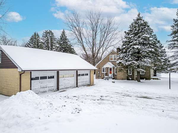 Nestled on over 10 serene acres of level land with beautiful mature trees, this all-brick home offers the perfect country retreat with a charming covered porch to enjoy peaceful views. AG zoning allows for horses, gardening, or cultivating your own crops, and a spacious detached three-car garage provides ample room for vehicles, equipment, or hobby space. Inside, the main level features a bright kitchen, inviting living room with some hardwood flooring, two bedrooms, and 1.5 baths, while the upstairs loft adds valuable flex space along with a third bedroom ideal for guests or a private getaway. The full basement offers endless possibilities for expansion or storage. All of this comes with convenient access to major roads while still preserving the quiet country charm you'll love.