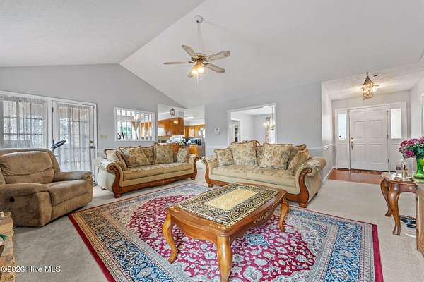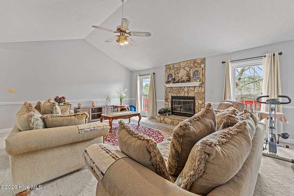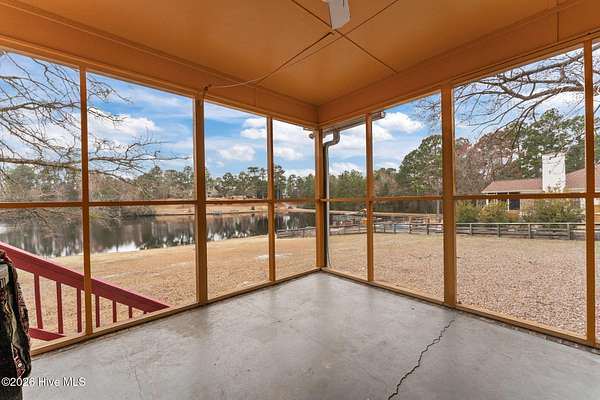 Welcome to peaceful waterfront living at 104 Sky Run in Rockingham. Tucked away on 1.75 private acres in a quiet, no-HOA neighborhood, this maintained 3-bedroom, 2-bath ranch offers the perfect blend of comfort, charm, and nature. With all living on one level, the home provides an easy, functional layout designed for both everyday living and relaxing weekends by the water. Inside, you'll find a well-cared-for home that has been maintained, while outside the property truly shines. Enjoy stunning water views from the screened-in porch, the perfect spot for morning coffee or winding down in the evening. Just steps away, a gazebo near the water's edge creates a peaceful retreat for entertaining, fishing, or simply soaking in the serene setting. The property extends into the water, giving you direct access to the beauty of the outdoors right in your own backyard. Surrounded by natural landscape, this home offers a sense of privacy while still being conveniently located near Rockingham amenities.