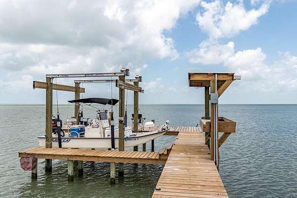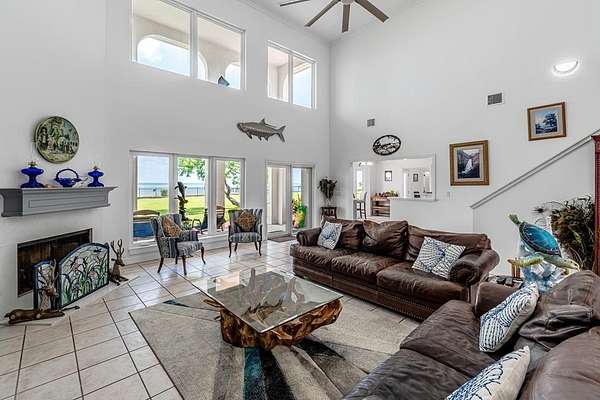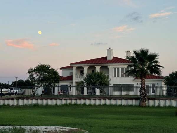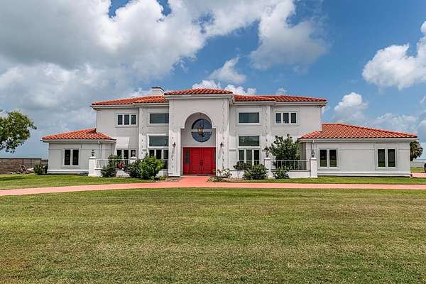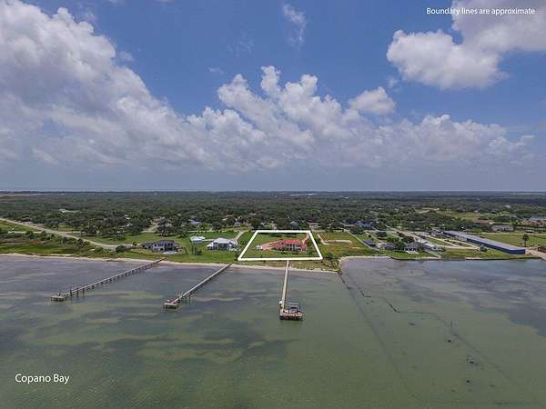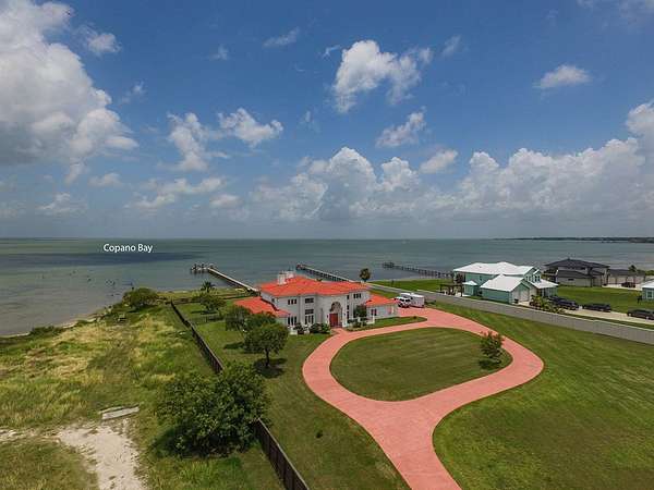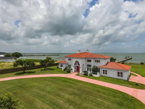 Bayfront Mediterranean Estate on Copano Bay in Rockport, Texas. Welcome to your private Mediterranean sanctuary on the serene shores of Copano Bay. Nestled on two sprawling, fully fenced bayfront acres with seawall, this elegant Rockport retreat combines timeless European style with the very best of coastal Texas living. With a stucco exterior, clay tile rooflines, arched doorways, and breezy verandas, this home is a showpiece of Mediterranean architecture--designed for both luxury and leisure. Step inside and be greeted by sun-drenched interiors and panoramic bay views through walls of windows. The open-concept layout flows effortlessly for entertaining, anchored by a custom built-in bar, multiple bonus rooms, and a dedicated office with rich built-ins--perfect for a private library or creative space. Owner's Suite closet is also a safe room, the perfect home for all your precious belongings. Whether you're hosting a large gathering or enjoying a quiet evening with family, this home is built for comfort and connection. Outdoors, the beautifully landscaped grounds feature a private beach, lush St. Augustine grass, tropical plantings, and a brand-new pier complete with a boat lift and dock--ready for your next fishing adventure. Situated on the leeward shoreline, you'll enjoy calm waters ideal for kayaking, paddleboarding, and peaceful sunset strolls all spring and summer long. Only minutes from downtown Rockport, you'll enjoy easy access to art galleries, local boutiques, seafood restaurants, and year-round festivals. Rockport is a haven for outdoor enthusiasts with world-class fishing, duck hunting, and wildlife watching all at your fingertips. This Copano Bay gem offers the perfect balance of privacy, luxury, and location--an entertainer's dream and a true retreat on the Texas coast. Your Mediterranean coastal escape awaits.