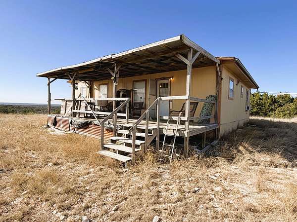 The road less traveled leads to +/- 89.96 acres of scenic and rugged Hill Country acreage in SW Edwards County called Porcupine Creek Ranch! The ranch is anchored by a 3 bedroom and 2 bathroom, +/- 1200 foot home situated along an all weather road. The road provides easy access and the ranch house has permanent electricity, private sewer, and a rainwater collection for plumbing(rainwater storage tank piped to the house). The home appears to be in great shape overall and perfect for weekends at the ranch! The scenery from the cabin is spectacular with over 200 feet of elevation change leading through meandering hills and valleys to the beginning of what becomes Porcupine Creek. Porcupine Creek watershed provides for a beautiful valley and rock bottomed drainage that eventually flows into the the Nueces river just south of here! One can only imagine the rushing water during heavy rains! The undulating topography of the Hill Country coupled with all of the native brush provide for unmatched beauty and also outstanding habitat for wildlife! Typical vegetation in the area includes multiple Oak species, Juniper, Agarita, Mountain Laurel, Sumac, Persimmon, plus scattered prickly pear and native grasses. Common wildlife in the area include Whitetail Deer, Axis, Aoudad, Wild Hogs, Bobcats, Ringtail Cats, Raccoons, and Porcupines! The home has a fenced yard with views for days from the covered back patio. Kitchen includes a pantry and LP gas range. The living area has a vaulted ceiling, accent wall, and open to the dining area. Primary bedroom has an attached bathroom and the other two bedrooms share a jack and jill style bathroom. Heat can be provided by a space heater piped with LP gas. Hunters rejoice! Multiple blinds and feeders will convey but they also make great observation areas if observing wildife is more your style! This ranch is located in Deer Park, 14 miles south of Rocksprings off Ranch to Market Road 674. Turn left through the electronic keypad accessed gate and then go another 2 miles to your slice of heaven. Deer Park collects $100/tract or $200/year from this property for road maintenance and that's a welcomed and much needed service in this terrain! Current property taxes do not reflect 1-D-1 ag exemption but owners are in the process of restoring the exemption. Don't miss this Edwards County gem-ideal for nature lovers, hunters, and dreamers. Schedule your showing today and look for a cave in the canyon while you're there!