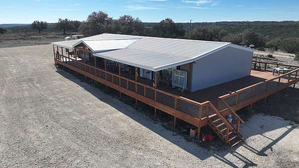 Double G Ranch +/- 124.89 Acres. Located in eastern Edwards County, Texas. Easy access, less than 2 miles of great access off the highway. A short 10 minute drive into Rocksprings and less than an hour from Kerrville. Fencing in place. Private water well, electricity, septic. 4/2 +/- 2280 sq ft fully furnished, including appliances, mobile home with +/- 1944 sq ft of wrap around decking to sit and enjoy the spectacular views. This high-end home can sleep up to 20 people. There is a large living room with gas fireplace and an additional family room. Views are spectacular from the front deck. Storage shed and large container for extra storage. Walk-in game cooler. Cleaning station. The terrain is rolling to sloping, there are 3 canyons with thick vegetation that make a great habitat for the wildlife. Clay lined pond fed by the well that provides year-round water for the animals. 4 hunting blinds 5 feeders. Ranch road system allowing access to almost all of the ranch. The abundance of game includes whitetail, turkey, hogs, axis, elk, red deer, addax, and other free ranging species. Listing #167 with Western Hill Country Realty