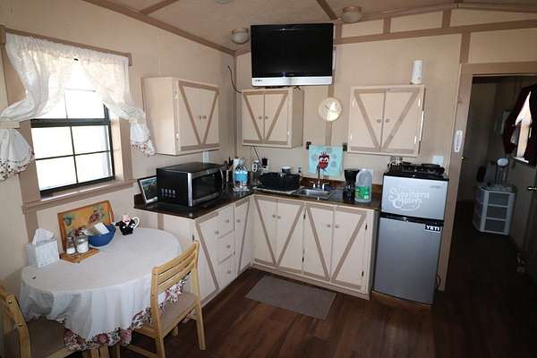Hilltop Home. Located in west central Edwards County, Texas. 2/2.5 2128 sq ft well-constructed home sitting high on a hilltop with 30-mile breathtaking views. Abundant large windows to take in the views from every room. Wrap around porch with 12x 12 deck to enjoy the views. Vaulted ceiling with one bedroom upstairs with half bath. Open floor plan in the kitchen with abundant storage space. Most furniture will convey. Additional +/- 800 sq ft 1/1 guest cabin with large deck and screened in porch to enjoy the view also. Shop and carport with 200 sq ft enclosed and insulated for a workshop. Private water well. Septic. Electricity. Water collection from the main house to use for wildlife water and gardening. Sloping terrain down to nice canyon area. Thick native vegetation making great habitat for the wildlife. Little to no hunting for many years. Watering trough and deer feeder just off the deck for wildlife viewing. The abundant game includes whitetail, turkey, hogs, axis, and the occasional fallow and sika and aoudad. Ag exempt taxes. Listing #90 with Western Hill Country Realty
