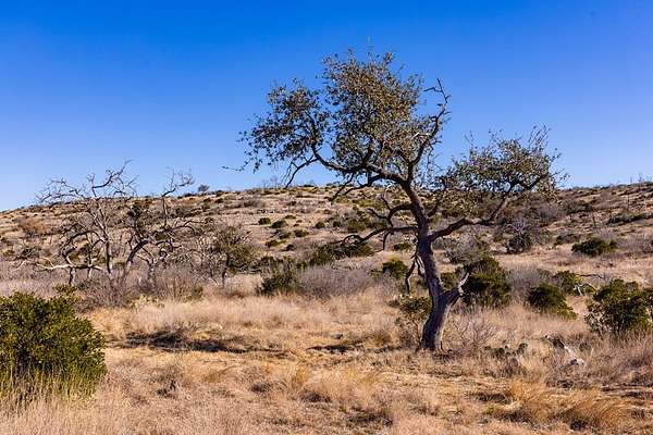 Grab yourself a beautiful piece of the Texas Hill Country. This 43+/- acre lot in Texana Oaks Ranch is primed to be your hunting retreat. With tracts ranging from 20 to 200 acres within this 1200 acre high fence ranch, owners can draw in a variety of species from wild hogs to native whitetail, turkey, dove and various exotics like axis, mouflon, audad and blackbuck. Access is relatively easy compared to similar tracts throughout the area. Well maintained caliche roads off Hwy 377 lead you to the ranch gate, then caliche/ranch cut roads traverse the terrain between tracts giving everyone drivability without 4x4. This tract is relatively primitive but does host a shared water well and its own electric connection. The travel trailer on site will stay with bill of sale. Feeder does not convey, just set up in February to capture pics of local wildlife. More pics will be added as they come in.