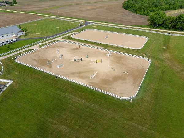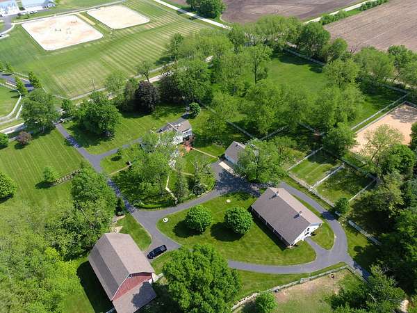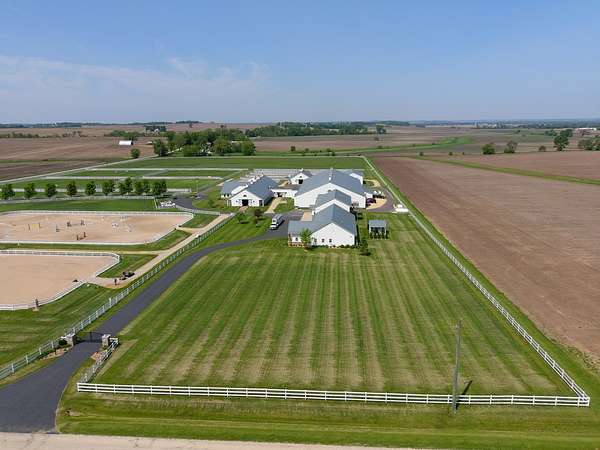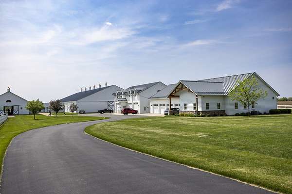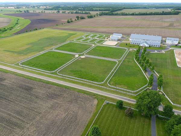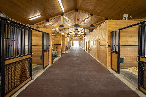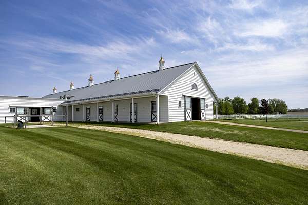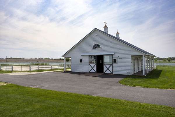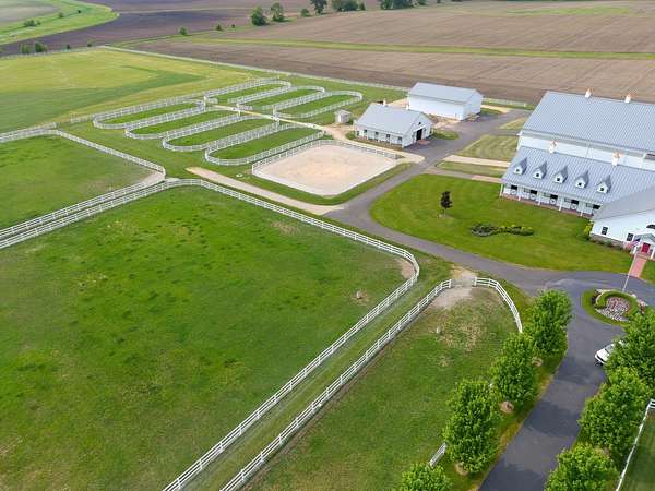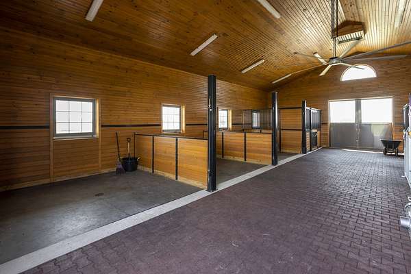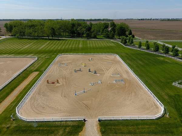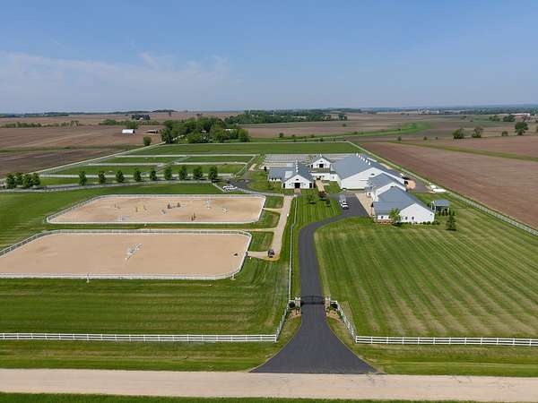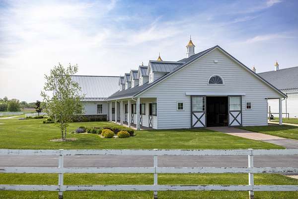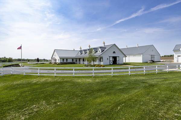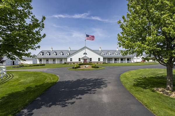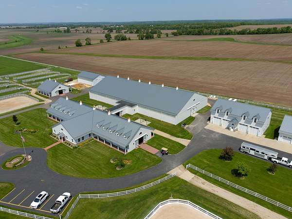 Top-of the line equestrian facility built with the horse in mind. Custom facility built in 2016 to house and train multiple grand prix level horses. Property designed to support and facilitate the needs of these top-level athletes. Main barn boasts 20 stalls with an attached 100' x 200' indoor arena. The barns and indoor arena feature architecture designed to prevent dust in the barns as well as an intricate ventilation system with copper cupolas. Insulated Kalwall surrounding the top of the indoor arena for natural light. Two outdoor arenas measuring 150' x 250' and 120' x 220' with drain tiles and an additional grass derby field. Main barn is complete with a large common area, including a fireplace and a full bathroom. The main barn also includes a laundry room with a commercial washer/dryer. The feed room includes a fridge and metal-lined feed bins/closet. A large, beautifully laid out tack room with custom cabinetry, saddle racks, bridle hooks, and sink. Barns have custom steel doors with insulation as well as radiant heated floors and gas furnaces in the indoor arena. All stalls measure 12' x 12' and are equipped with Dutch doors, wall-mounted waterers aligned with the buckets, personalized fans as well as Big Ass Fans (brand name) along the aisle. Barn complete with custom-made trusses and antique lamps for a first-class look. Hot and cold indoor wash rack with radiant heated floors and an overhead infra-red heater. Four outdoor wash racks. Separate from the main barn, there is a heated vet/farrier barn with two stalls, grooming stalls, and a horse treadmill. Separate equipment barn with four tall garage doors, a bathroom, and two apartments above. Both apartments are 2 beds/ 2 baths. Additional building with a 5 car garage, office space and custom indoor shooting range. Separate hay barn. A beautiful historic home across the street for added privacy with an additional 9 stall barn and 75' x 110' outdoor arena. Owners are currently in the home and use smaller barn for the young horses. Home built in the 1860s and the large red barn, used for storage, is from the early 20th century. The property is a total of 46 acres. 31 total acres of new barn, including 10 acres of hay field, 8 acres across the street with the home and smaller barn, and 7 acres down the road with more hay fields. Property truly needs to be seen in person to appreciate the craftsmanship and beauty of the grounds. Be sure to view the attached video and information sheet. Equipment to be conveyed with sale, please view list in additional information. Located 15min from Ledges Sporting Horses and 1 hour from Lamplight Equestrian Center. Words do not do justice to the beauty and craftsmanship of this property.
