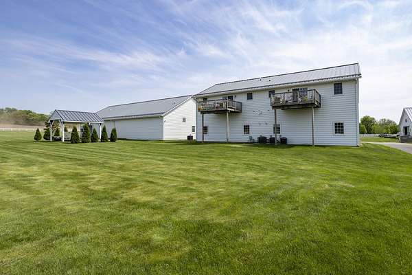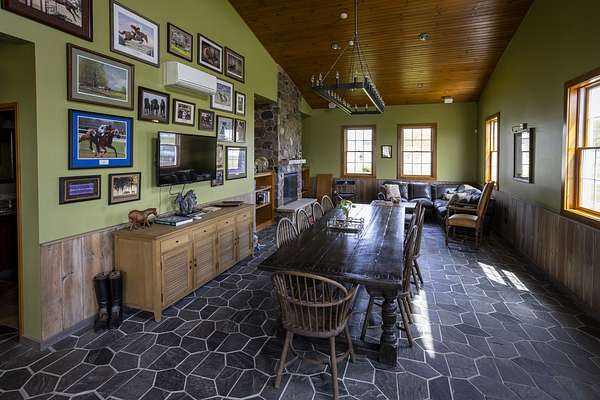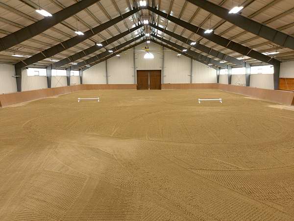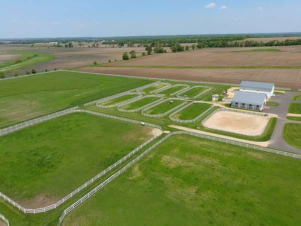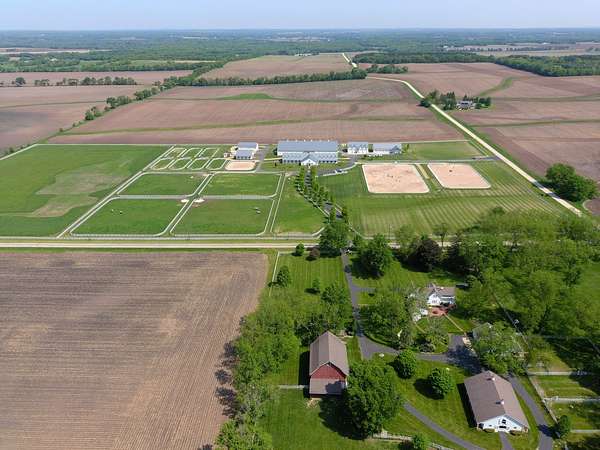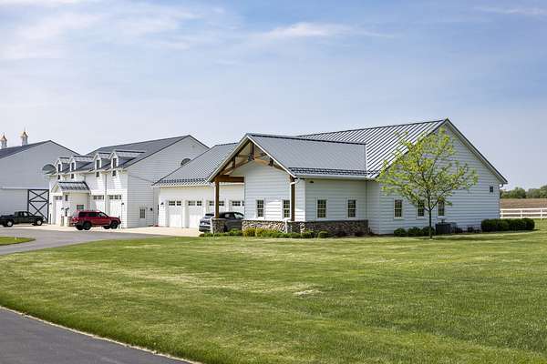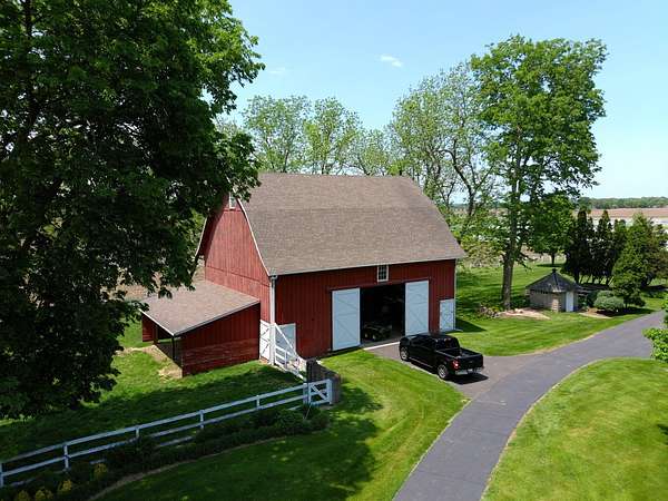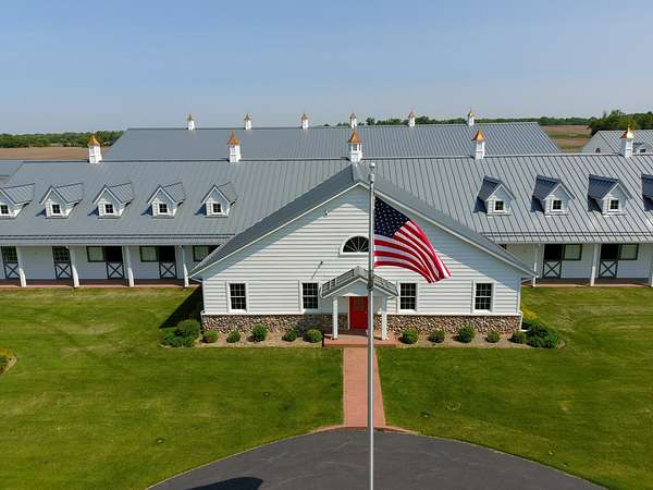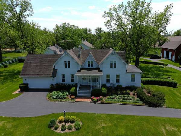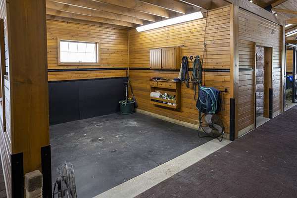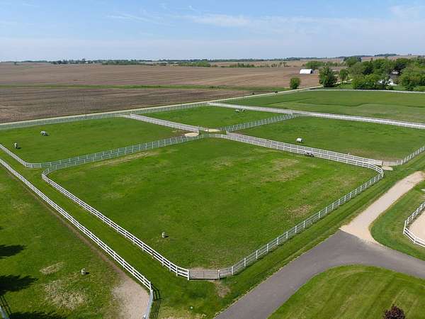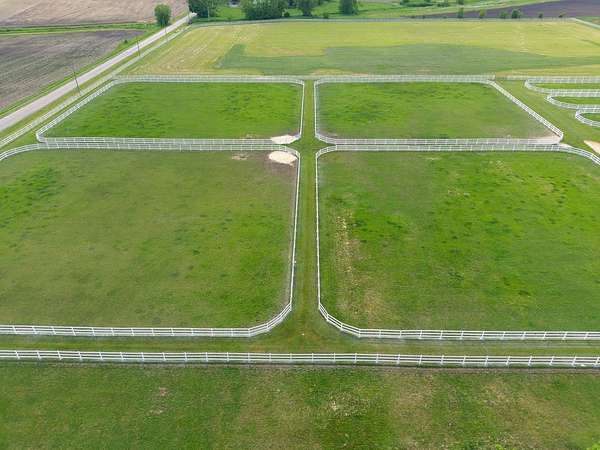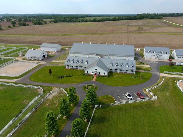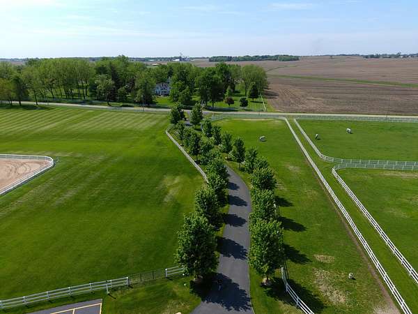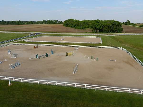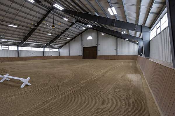 Top-of the line equestrian facility built with the horse in mind. Custom facility built in 2016 to house and train multiple grand prix level horses. Property designed to support and facilitate the needs of these top-level athletes. Main barn boasts 20 stalls with an attached 100' x 200' indoor arena. The barns and indoor arena feature architecture designed to prevent dust in the barns as well as an intricate ventilation system with copper cupolas. Insulated Kalwall surrounding the top of the indoor arena for natural light. Two outdoor arenas measuring 150' x 250' and 120' x 220' with drain tiles and an additional grass derby field. Main barn is complete with a large common area, including a fireplace and a full bathroom. The main barn also includes a laundry room with a commercial washer/dryer. The feed room includes a fridge and metal-lined feed bins/closet. A large, beautifully laid out tack room with custom cabinetry, saddle racks, bridle hooks, and sink. Barns have custom steel doors with insulation as well as radiant heated floors and gas furnaces in the indoor arena. All stalls measure 12' x 12' and are equipped with Dutch doors, wall-mounted waterers aligned with the buckets, personalized fans as well as Big Ass Fans (brand name) along the aisle. Barn complete with custom-made trusses and antique lamps for a first-class look. Hot and cold indoor wash rack with radiant heated floors and an overhead infra-red heater. Four outdoor wash racks. Separate from the main barn, there is a heated vet/farrier barn with two stalls, grooming stalls, and a horse treadmill. Separate equipment barn with four tall garage doors, a bathroom, and two apartments above. Both apartments are 2 beds/ 2 baths. Additional building with a 5 car garage, office space and custom indoor shooting range. Separate hay barn. A beautiful historic home across the street for added privacy with an additional 9 stall barn and 75' x 110' outdoor arena. Owners are currently in the home and use smaller barn for the young horses. Home built in the 1860s and the large red barn, used for storage, is from the early 20th century. The property is a total of 46 acres. 31 total acres of new barn, including 10 acres of hay field, 8 acres across the street with the home and smaller barn, and 7 acres down the road with more hay fields. Property truly needs to be seen in person to appreciate the craftsmanship and beauty of the grounds. Be sure to view the attached video and information sheet. Equipment to be conveyed with sale, please view list in additional information. Located 15min from Ledges Sporting Horses and 1 hour from Lamplight Equestrian Center. Words do not do justice to the beauty and craftsmanship of this property.
