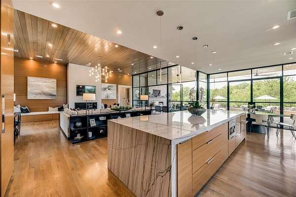 - Built-In Features, Cable TV Available, Chandelier, Decorative Lighting, Double Vanity, Dumbwaiter, Eat-In Kitchen, Flat Screen Wiring, Granite Counters, High Speed Internet Available, Kitchen Island, Natural Woodwork, Open Floorplan, Paneling, Pantry, Second Primary Bedroom, Smart Home System, Sound System Wiring, Vaulted Ceiling(s), Walk-In Closet(s), Wet Bar