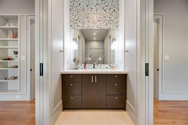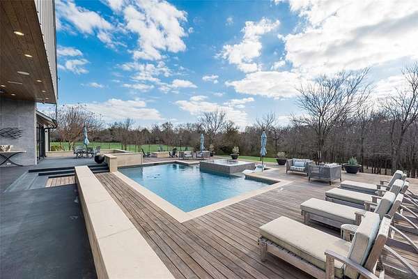 This ONE of a kind architectural showpiece has an exquisite flair of craftsmanship, design, and extraordinary setting. Exclusive 12 acs Gated Estate with AG. NO HOA’s. RISD. Surrounded by trees, fenced, landscaped, & private pond. Unforgettable grand entry monumental steel-&-glass architectural double doors, gas lanterns, & IPE hardwood & limestone accents. Custom architectural wall coverings. 5 luxury BR & 5 luxury baths w.custom flairs. Private family wing & media lounge. GREATROOM is the heart of the residence, 15ft vaulted ceiling clad in white oak, sculptural designer lighting, elegant gas fireplace frame w.custom finishes, built-in cabinetry w.tailored seating, stunning wall of steel reinforced glass, 8 ft steel-framed doors, w.multi-zone surround sound. CHEF KITCHEN is the centerpiece, culinary space, walnut cabinetry, 16 ft waterfall island w.seating for 5, built-in refrig w.walnut paneling, 48 inch Therm gas range, 6 burners, griddle, double oven, designer range hood, breakfast nook, framed by steel-and-glass doors. XL Butler‘s Pantry w.2nd Prep Kitchen. PRIMARY BR integrated king bed flanked by marble nightstands, striking Brazilian wood featured wall, luxury wall of windows w.blackout drapery, Two 8 ft steel doors private patio, vaulted exposed architectural beams. Private elegant office. PRIM Spa Haven floating dual vanities, Italian walk-in shower & soaking tub. PRIM DRESSING huge island w.his & her drawers, makeup vanity, chandelier, wardrobe storage, & more. Main areas 15ft vaulted white oak ceilings & 8 ft doors. Artesian wall finishes & walnut featured walls. Milgard window treatments. 6 car & workshop. SPORT POOL & infinity spa w.tanning ledge, premium Brazilian hardwood decking. Covered Outdoor fireplace, formal dining area, Lynx XL grill station, green egg, smoker, broil pit, stainless steel, outdoor storage, granite, refrig, & heaters. Tons of seating, Firepit lounge, dining, sun loungers, elegant gas lanterns, & audio system. Poolside spa bath.